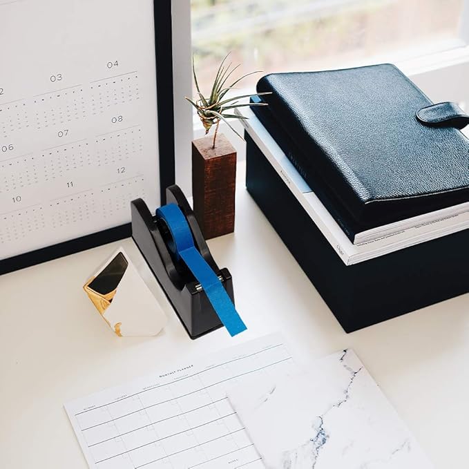 - 4. HEAVY DUTY BASE: 1.53LB Weighted Tape Dispenser and full non-skid pad is firm enough to have a strong grip on the surface to allow you to cut off the tape safely and easily on desktop from different angles