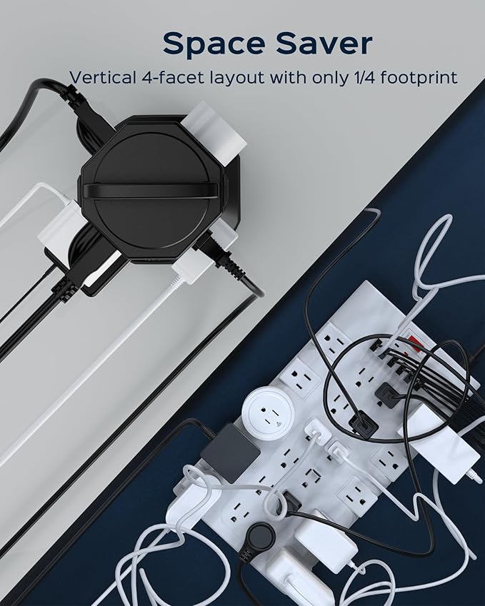 - ▶【22-in-1 Power Strip】With 16 widely spaced AC outlets(2.2inch) and 6 smart charging USB ports (2 USB C), this surge protector tower is powerful enough to accommodate most of your devices altogether at the same time in one place. Only one power strips with surge protection is enough for all your gaming setup, media essentials, phone, tablet, PC, laptop, computers, headphones, sound system, TV, router, monitor, camera, smartwatch, microphone, printer, fax machine, scanner, fan, etc.