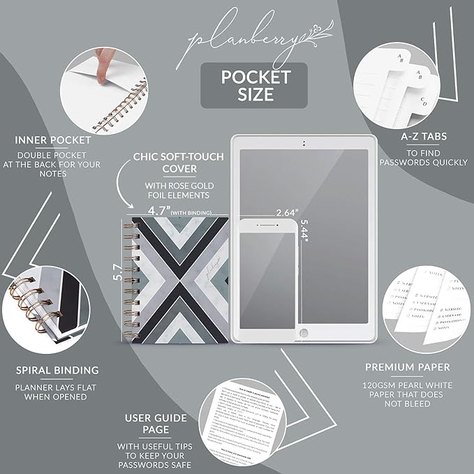 - PREMIUM QUALITY & PERFECT GIFT IDEA – Elegant pocket password journal with a soft-touch hardcover, thick no-bleed paper, sturdy binding, and a back pocket for loose notes. Great gift for parents, grandparents, or anyone who prefers offline password storage.