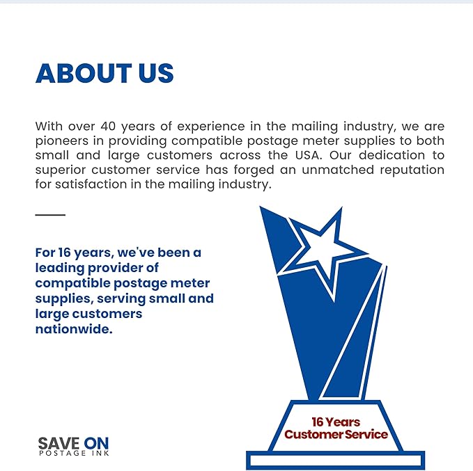 - ABOUT US: Our Company is a postage meter supply market leader that sells postage meter supplies all over the United States. We have over 36 years of experience in the mailing industry & our main focus on customer satisfaction has helped us establish an unequaled reputation within the mailing industry. ***All product names, logos and brands are property of their respective owners. All company, product and service names used are for identification purposes only.***