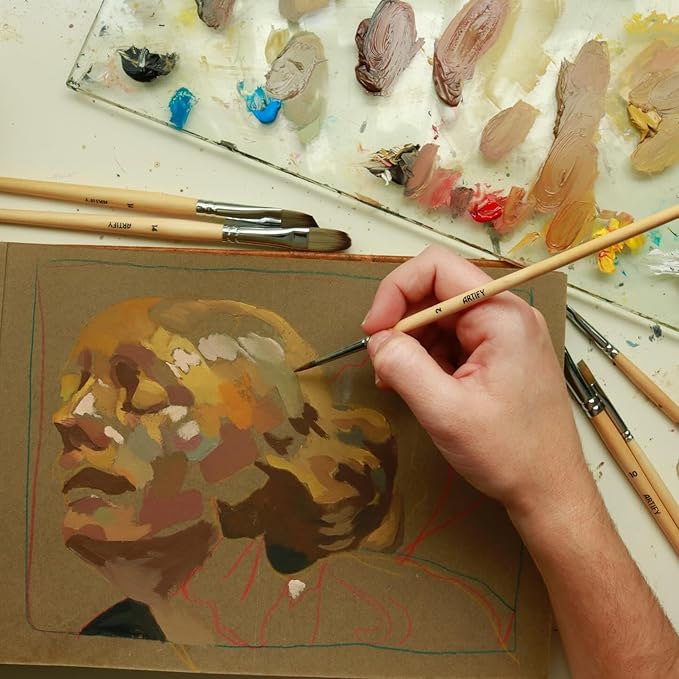 - Specially Selected Shapes & Sizes: To inspire fresh creativity, Artify has handpicked this brush collection of 24 different shapes and sizes, including liner, flat, angular, filbert, round, fan brushes and a painting knife. This paintbrush set caters to your needs, whether you're working on detailed paintings or large coat applications, bringing each stroke to life