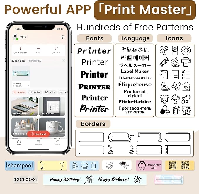 - Multiple Creative Functions & Label Templates - Choose from 1000+ symbols, 60+ frames, and a variety of fonts. Enjoy convenience and save time. Easily create various label designs using the app, including icons, text, tables, symbols, logos, barcodes, QR codes, images, timestamps, Excel imports, scanning, OCR, and voice recognition. It’s fun and effortless!