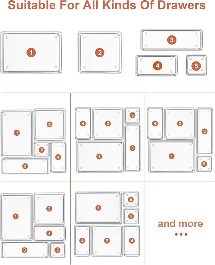 - Save your Times - Clear drawer organizers can save your time to organize and find your stuff, itโs easy to find and use your items in the drawer, keep your space neat, help you get a neat lifestyle and enjoy more.