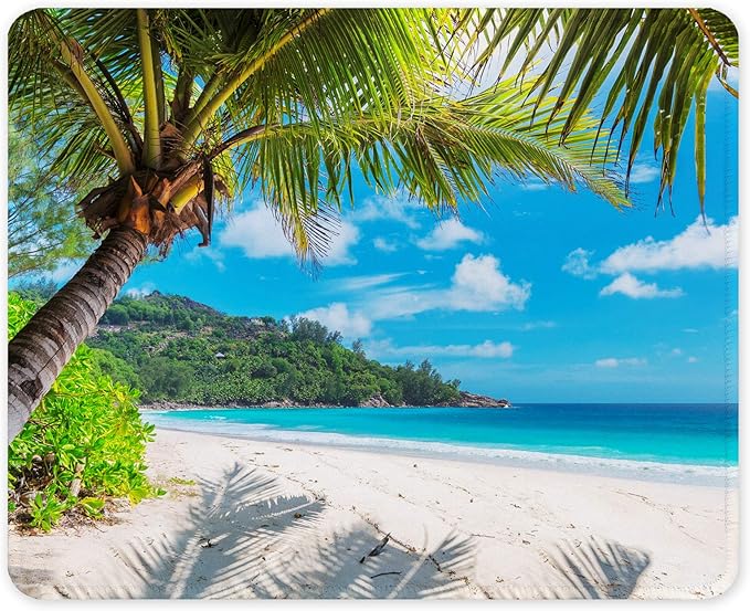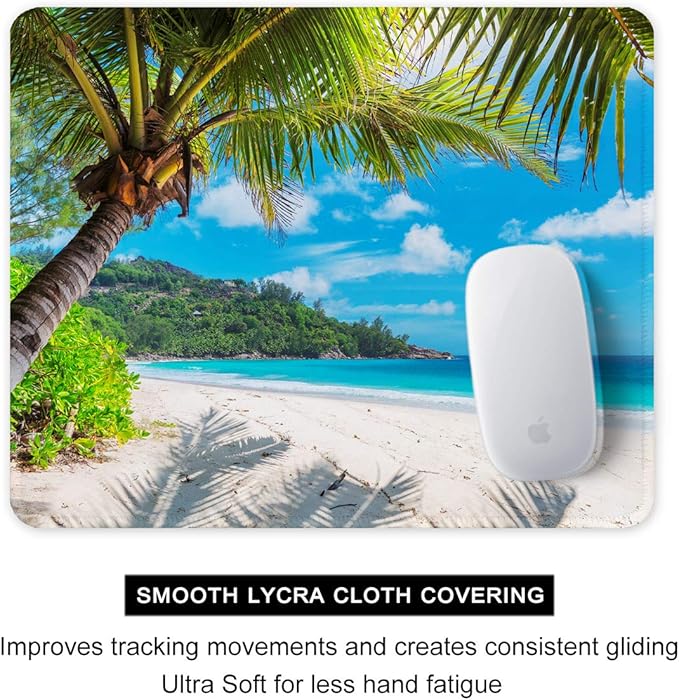 Auhoahsil Mouse Pad, 12 x 10 in Summer Beach Theme Computer Mouse Pad for Desk, Premium-Textured Non-Slip Rubber Stitched Edges Waterproof Square Mouse Mat for Gaming Work Wireless Mice, Blue
