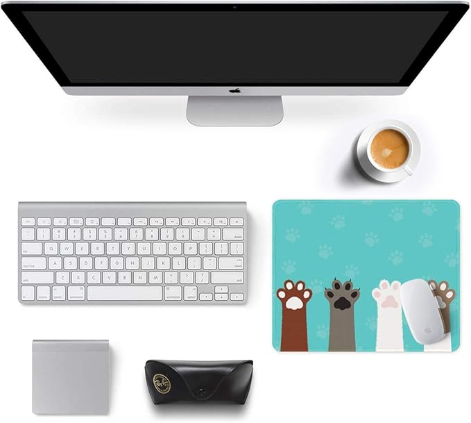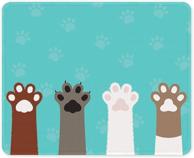 Auhoahsil Mouse Pad, 12 x 10 in Cute Cat Paws Theme Computer Mouse Pad for Desk, Premium-Textured Non-Slip Rubber Stitched Edges Waterproof Square Mouse Mat for Gaming Work Wireless Mice, Green