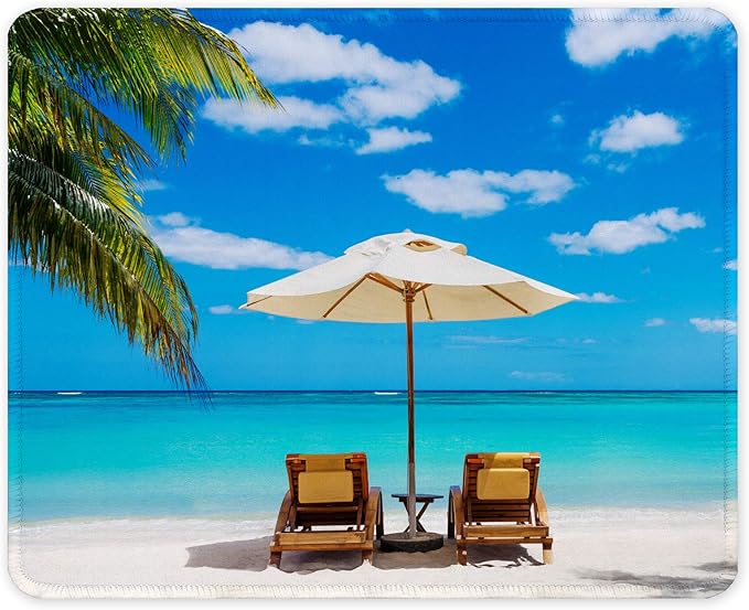 Auhoahsil Mouse Pad, 12 x 10 in Beach Theme Computer Mouse Pad for Desk, Premium-Textured Non-Slip Rubber Stitched Edges Waterproof Square Mouse Mat for Gaming Work Wireless Mice, Blue
