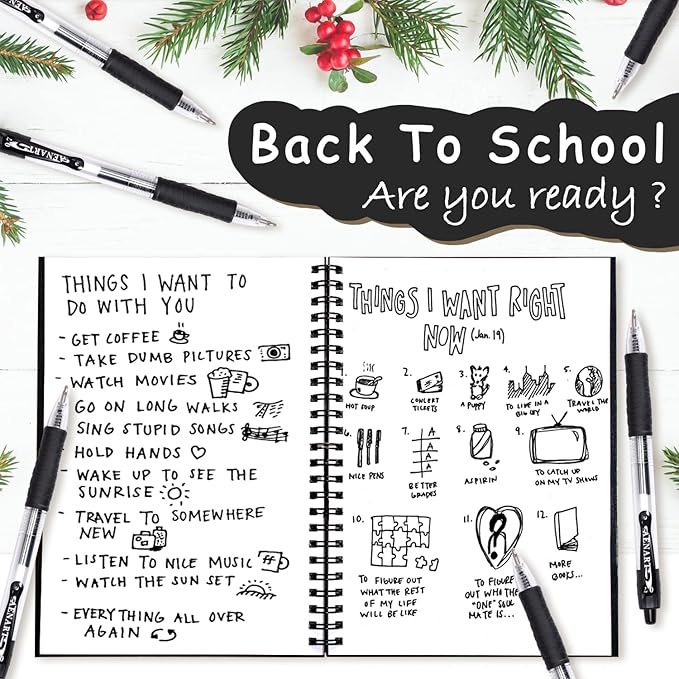 - Long Lasting Ink: Large ink tube is filled with more ink for our gel pens, which makes our black pens long lasting. Quick drying makes you stay away from smearing, and left handed people can easily use it.