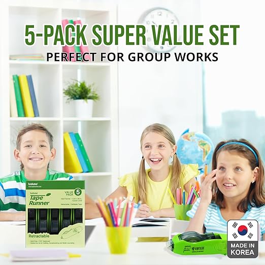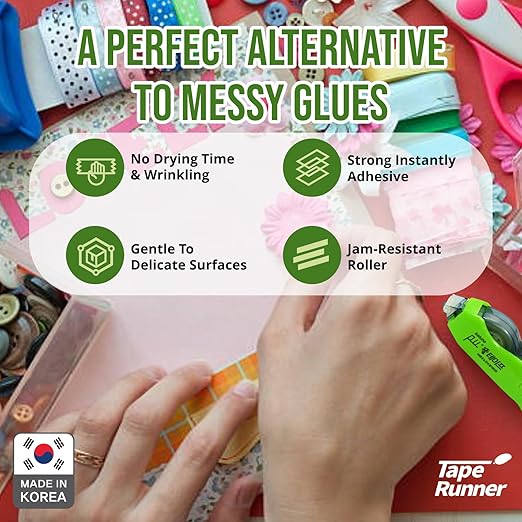 Tape Runner - Double Sided Adhesive with Dispenser Roller Included - Acid Free, Sticky, Transparent - Ideal for Scrapbooking, Crafts & More - Retractable (315 inches per Cartridge), 5 Cartridges