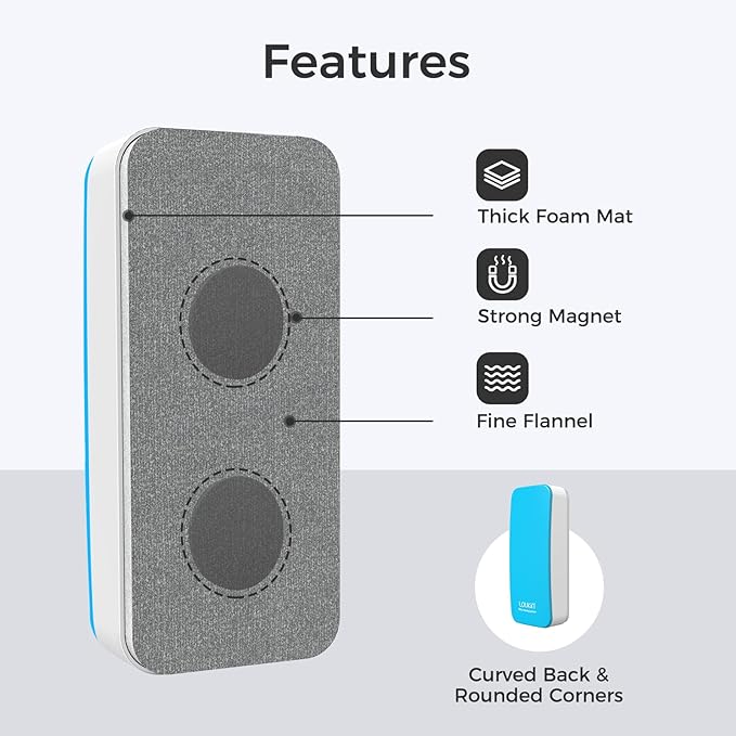 loukin Magnetic Dry Erase Eraser, Whiteboard Eraser, Glass Board Remover, 3.4 fl oz Whiteboard Cleaner Included, for Classroom, Home and Office Use (Blue)