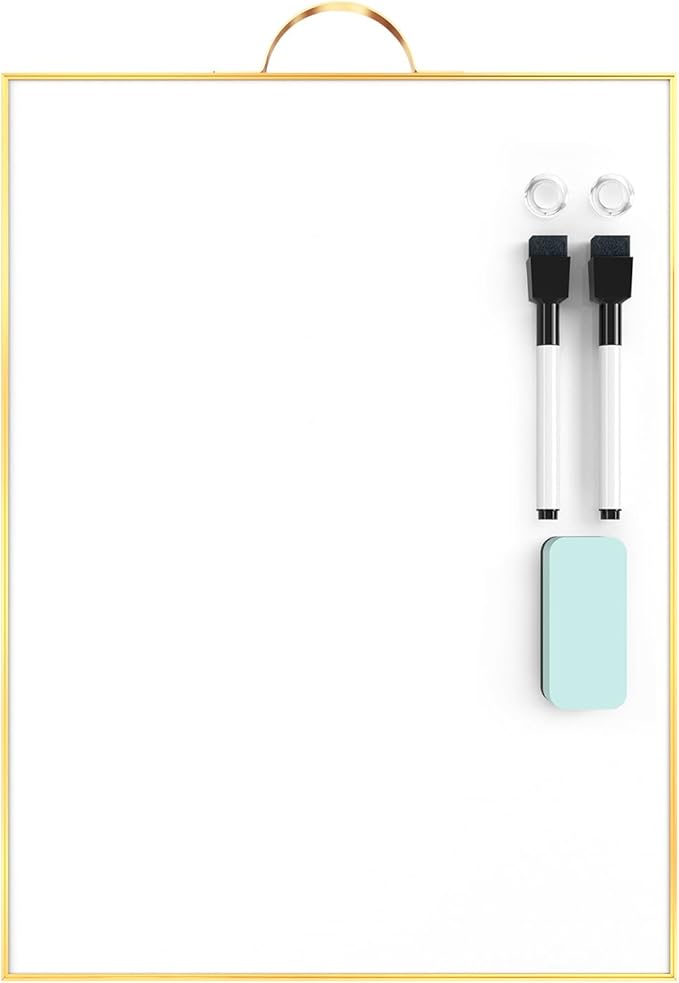 TSJ OFFICE Small White Board - 16" X 12" Portable Gold Aluminum Framed Whiteboard, Magnetic Dry Erase Board with a Handle, to Do List Notepad for Office, Home, School