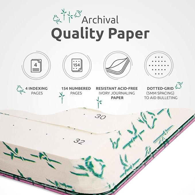 - NON-BLEED 120GSM THICK PAPER: This art journal contains 80 sheets (160 pages) of acid-free, smooth, ivory, non-bleed 120 gsm thick dotted notebook paper that is ink-proof and won’t create feathering if you use a fountain pen, or similar. It includes 4 indexing pages and archiving label stickers to help you keep track of things.