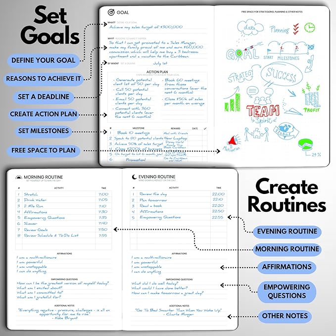 - STAY ALIGNED WITH YOUR GOALS – Use built-in goal-setting tools and review prompts to stay focused on long-term success—whether you’re managing business milestones, career growth, or personal development.