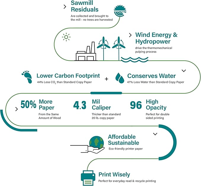- Elementree printer paper is made in the USA using leftover sawmill wood chips - no new trees are harvested. Its pulping yields 50% more paper from the same amount of wood than standard copy paper