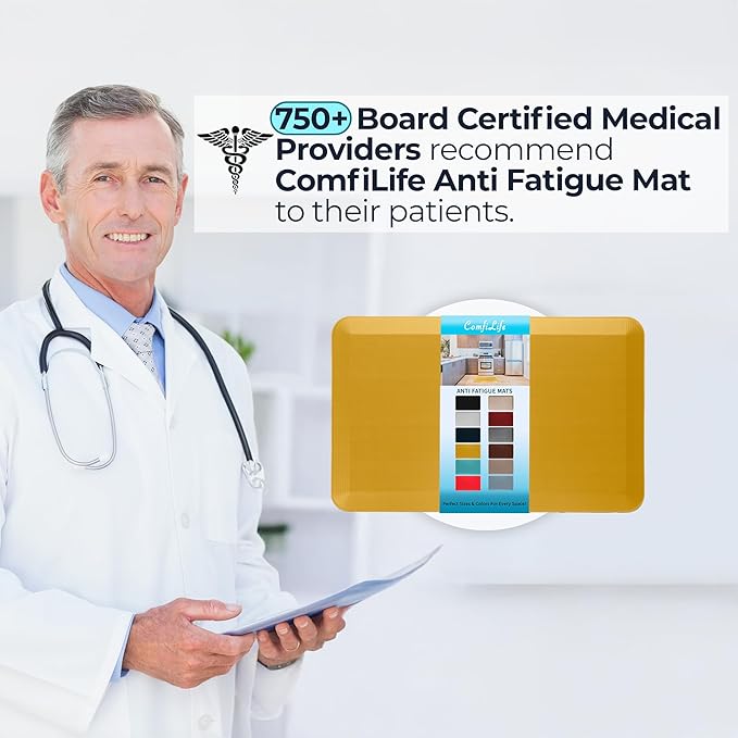 ComfiLife Anti Fatigue Floor Mat – 3/4 Inch Thick Kitchen Mats for Floor, Standing Desk Mat, Kitchen Rug – Comfort at Home, Office – Durable – Stain Resistant – Non-Slip Bottom (20" x 32", Mustard)