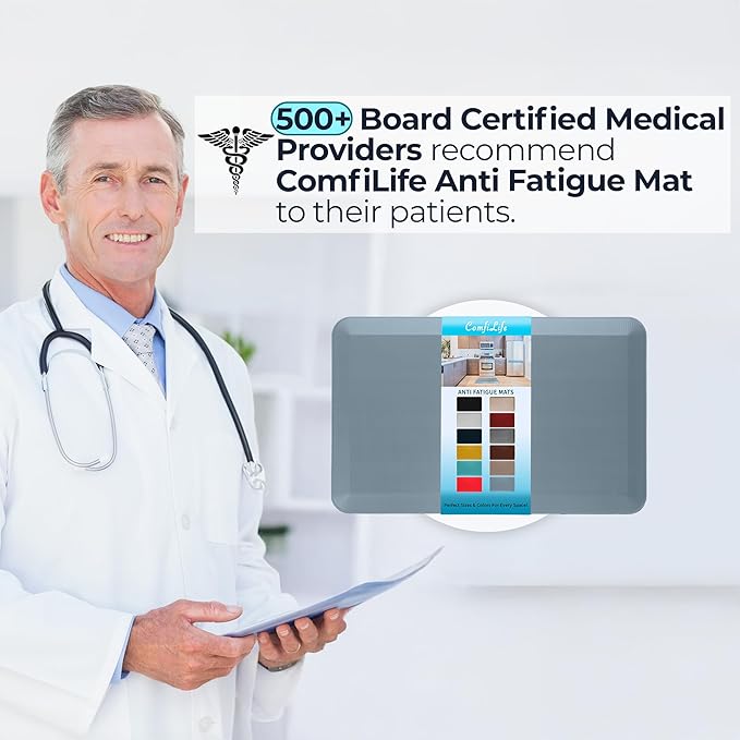 - Anti Fatigue Mat: The ComfiLife anti-fatigue floor mat enhances comfort while standing. It is professionally engineered and can be used as padded kitchen mat or for your standup desk that will not lose support over time