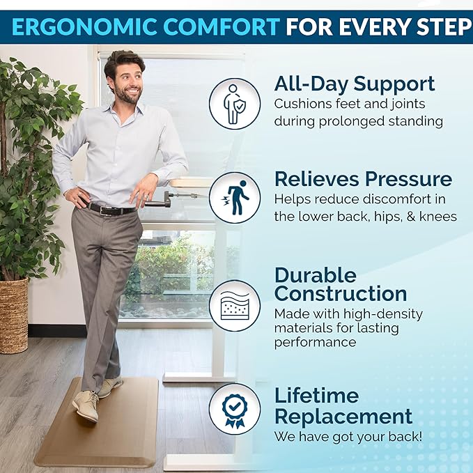 - Exceptional Comfort Anti Fatigue Mat: ComfiLife kitchen mats for floor enhance comfort while standing. It is professionally engineered and can be used as padded kitchen mat or for your standup desk that will not lose support over time. Ideal for use as a standing desk mat., kitchen mats cushioned anti fatigue, kitchen floor mat or anti-fatigue mats for kitchen floor.