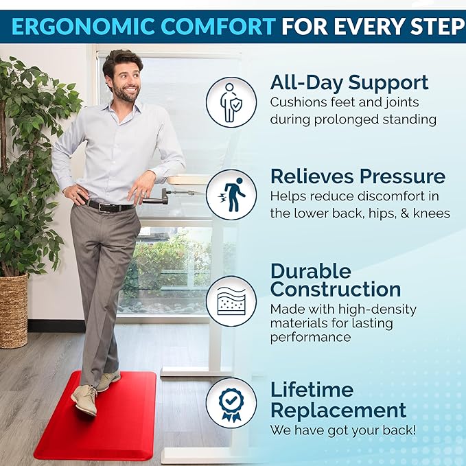 - Exceptional Comfort Anti Fatigue Mat: ComfiLife kitchen mats for floor enhance comfort while standing. It is professionally engineered and can be used as padded kitchen mat or for your standup desk that will not lose support over time. Ideal for use as a standing desk mat., kitchen mats cushioned anti fatigue, kitchen floor mat or anti-fatigue mats for kitchen floor.