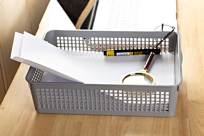 A4 Size Plastic Paper Storage Trays,Desktop File Organizer Baskets,6-Packs (Grey)