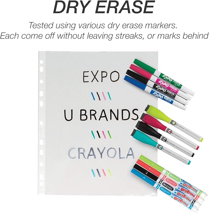 - DRY ERASE SHEETS - Perfect for DIY dry erase pockets, or homeschool supplies, these 11 hole plastic sleeves save time and money. Each plastic sheet holds 10-12 pages of paper