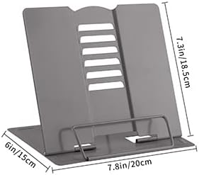 - 6 Adjustable Reading Positions Book Stand: Length-7.3in, Width-7.8in. The cookbook holder is adjustable with various notches at the movable rear back stand, which makes you can adjust the height and angle according to your need. Promotes proper posture for better spinal health.