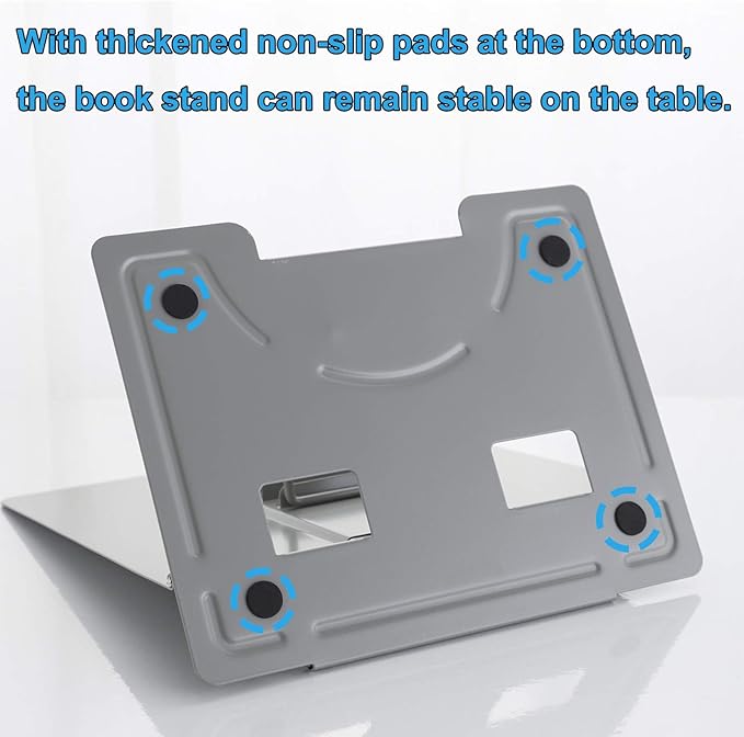 MSDADA Desk Book Stand Metal Reading Rest Book Holder Angle Adjustable Stand Document Holder Portable Sturdy Lightweight Bookstands-Textbooks Tablet Music Books Cook Recipe (Grey)