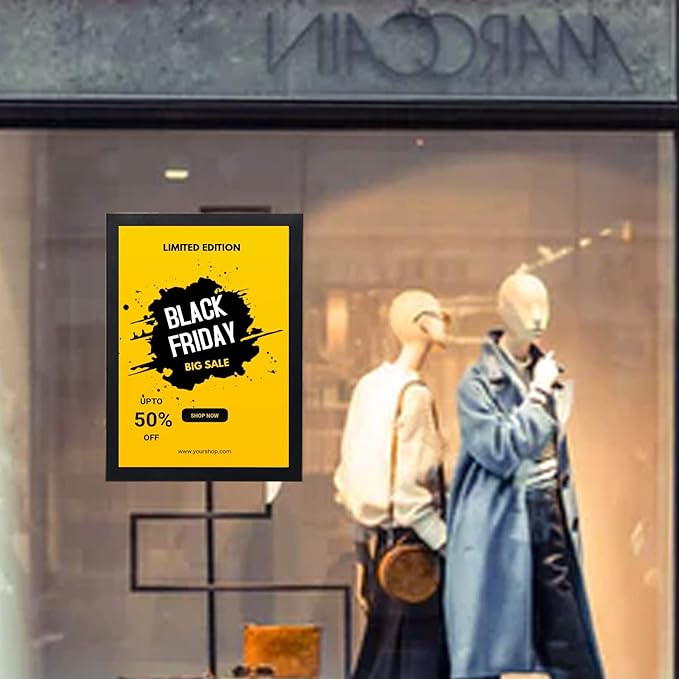 - DOUBLE-SIDED DISPLAY-The window sign holder can be affixed to the inside of the window, external and internal display together, suitable for real estate agents to display real estate information, stores to display discounts and business hours, advertising in the showcase and glass door.