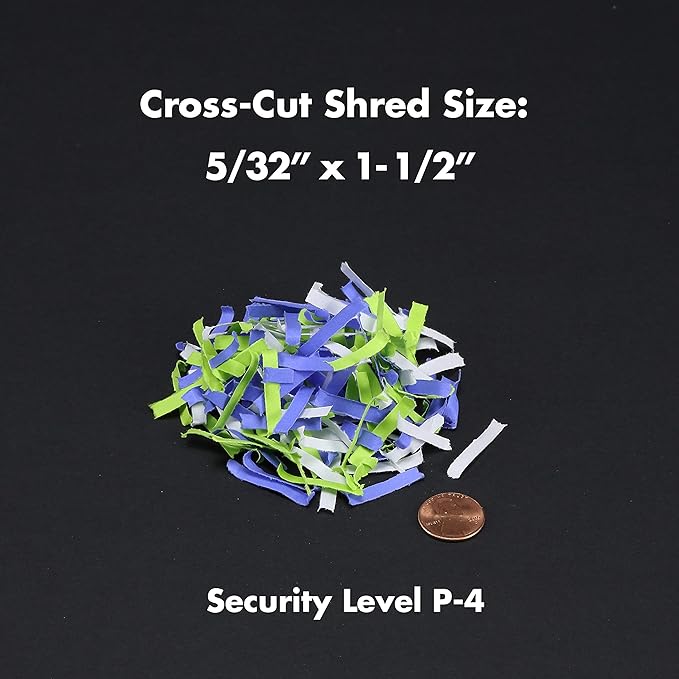 - Shreds paper, CDs, DVDs, credit cards into small pieces (5/32 by 1-1/2 inches), security level P-4