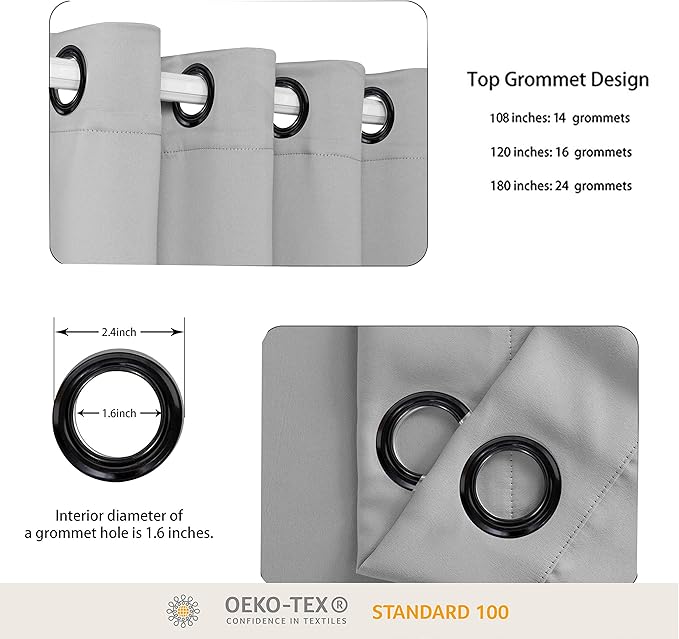 - WHAT'S IN THE PACKAGE? Each set includes 1 curtain panel, and each window drape measures 96-inch (8 ft) length by 120-inch (10 ft) width. 14 elegant metal grommets with 1.6-inch inner diameter, fit well with standard or decorative curtain rods, which makes the curtains easy to install and slide.