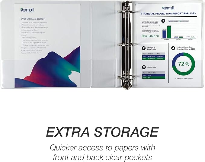 - Professional Look: Designed to impress during presentations and look great on a shelf, our 3-ring binder features back-lid-mounted D-shaped binder rings for a rivetless spine