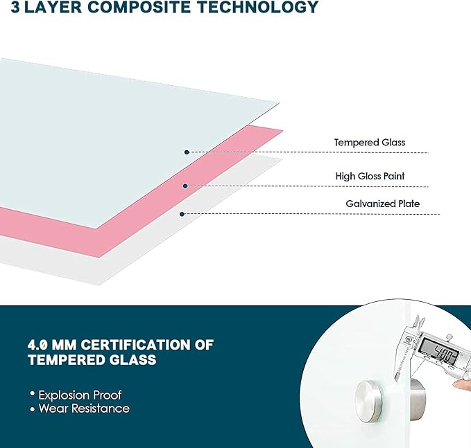 - 【Environmental& Long-Lasting】 The tempered glass whiteboard with strong durable surface resists stain and ghosting. Designed with 4mm thickness, rounded corner and smooth edges, Our glass board are cleaner, safer and longer lasting than traditional white boards