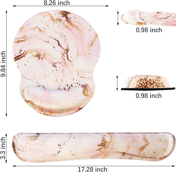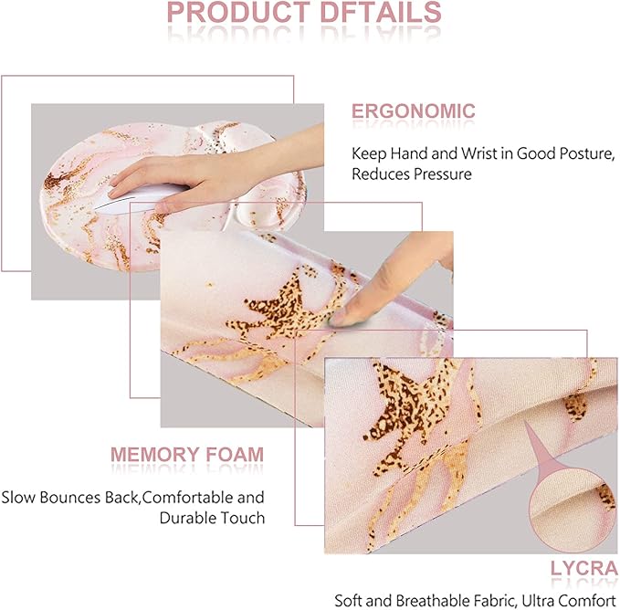 ArtSo Upgraded Wrist Rest Support for Mouse Pad & Keyboard, Ergonomic Gel Mousepad Non-Slip Rubber Base Home,Office Pain Relief & Easy Typing Cushion Neoprene Cloth & Soft Memory Foam, Pink Marble
