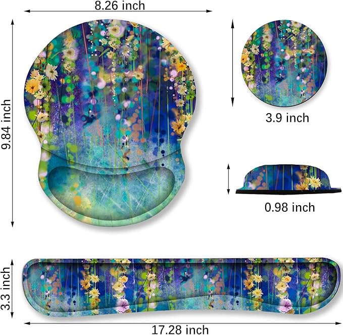 ArtSo Mouse Pad Keyboard Wrist Rest Support Ergonomic, Upgraded Cushion Mousepad Gel Memory Foam Non-Slip Rubber Base Pain Relief & Easy Typing for Home,Office, Oil Painting Flowers