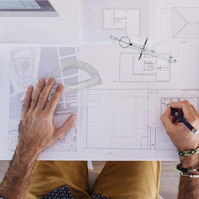 - 6-inch protractor made with transparent clear plastic, accurate and long-lasting prints