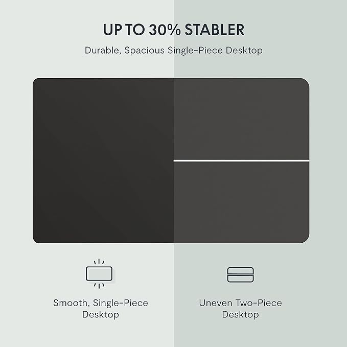 - 1" THICK ONE-PIECE DESKTOP:Experience the elegance of a completely smooth, seamless desktop surface. This design not only enhances the aesthetic but also ensures a sturdier and more stable structure compared to spliced tabletops.