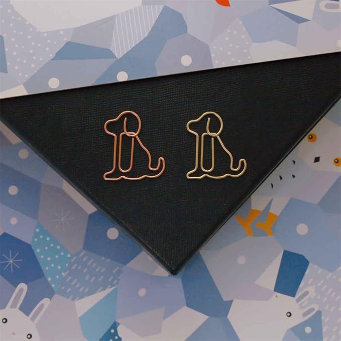 OWLFAVO 30pcs Puppy Dog Shape Paper Clips with Clear Box, Rose Gold and Yellow Gold, Funny Cute Paperclips Bookmarks Planner Clips for Fun Office Supplies School Gifts Wedding Decoration