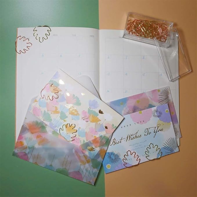 OWLFAVO 36pcs Monstera Shape Paper Clips with Clear Box, Rose Gold and Yellow Gold, Funny Cute Paperclips Bookmarks Planner Clips for Fun Office Supplies School Gifts Wedding Decoration