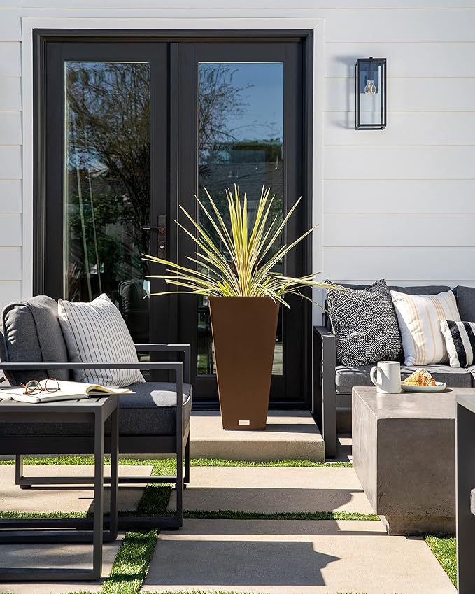 - GARDEN DECOR: Decorate your space with the Veradek Taper planter; Whether you use it as a patio, entrance or railing accent, this strong and sturdy yet lightweight contemporary garden container is the perfect fit with its sharp and modern appeal
