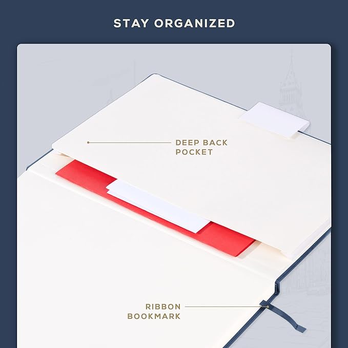 - Made For Your Convenience - The A4 wide ruled journal's 180° lay-flat binding, elastic closure, deep back pocket, and bookmark ribbon offer modern practicality and a premium experience.