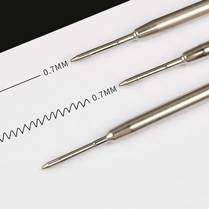 - Good quality: the body of refill is made of metal material, lightweight and smooth; Ink quickly dries with a consistent ink flow, won't bleed through