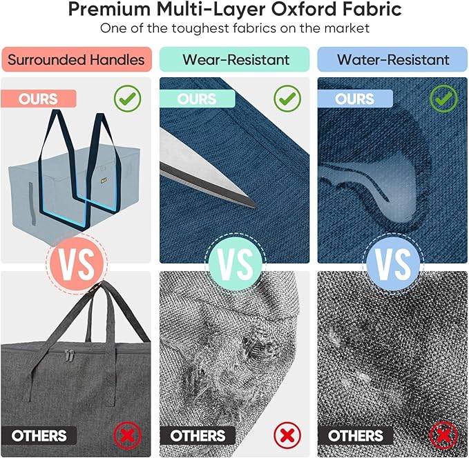 BALEINE Extra Large Storage Tote with Zippers & Carrying Handles, Heavy-Duty Oxford Fabric Moving Bags for Laundry, Space Saving, Storage, Denim Blue