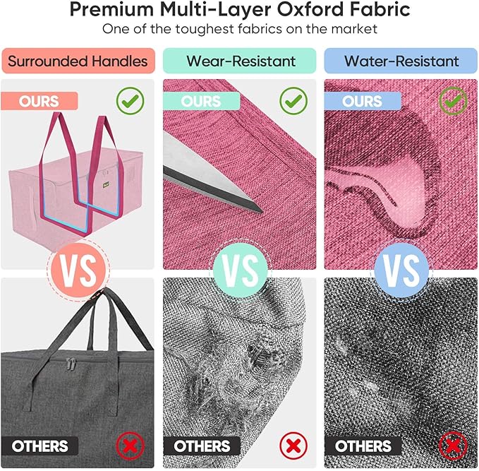 BALEINE Extra Large Storage Tote with Zippers & Carrying Handles, Heavy-Duty Oxford Fabric Moving Bags for Laundry, Space Saving, Storage, Berry Red