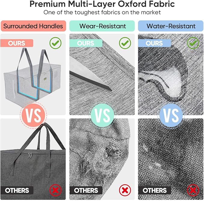 - [✔️ LARGE & PREMIUM MATERIAL]: 23.6'' x 11.8'' x 11.8'' and up to 14 Gallon volume. The totes are made with 900D oxford fabric PVC coated material and premium lining that provides an excellent waterproof performance. The oxford storage tote is an alternative for moving box and organizer. Perfect for space saving, clothes storage, moving, camping and more.