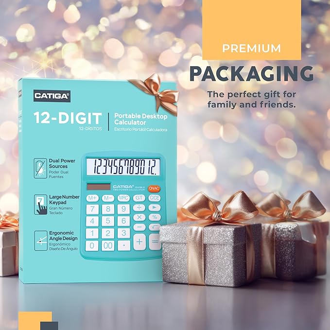 CATIGA Desktop Calculator 12 Digit with Large LCD Display and Sensitive Button, Solar and Battery Dual Power, Standard Function for Office, Home, School, CD-2786