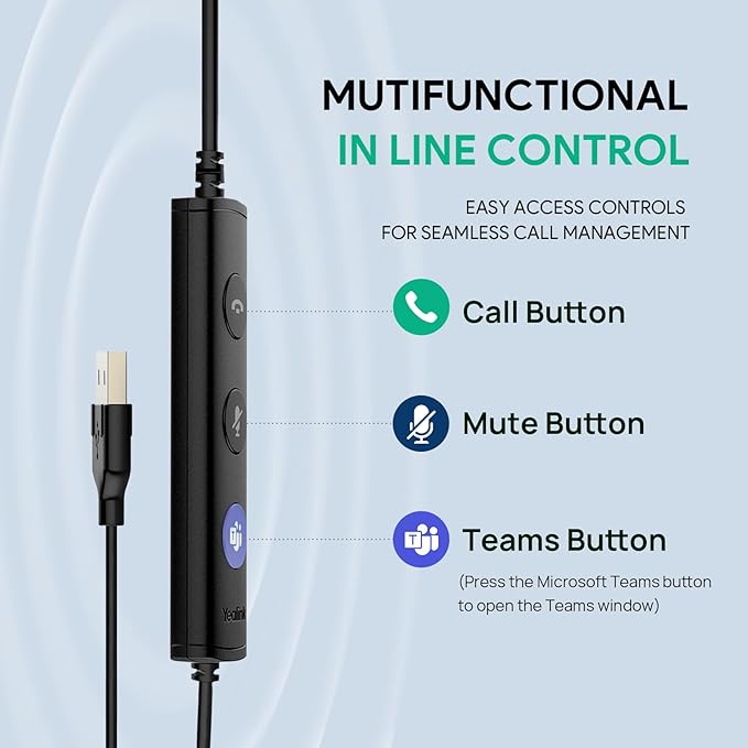 Yealink UH36 Professional USB Headset, Wired Headphones for Computer PC Laptop Work Headset with Noise Canceling Mic for Call and Music(for Teams Certified, Stereo,3.5mm Jack/USB Connection)