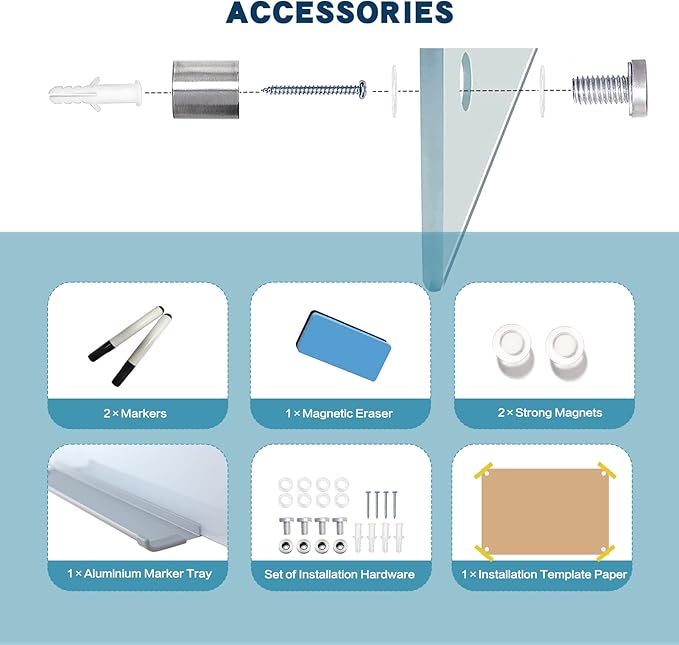 - Easy to Write and Erase: The smooth tempered glass surface ensures effortless writing, easy erasing, and prevents dust buildup.