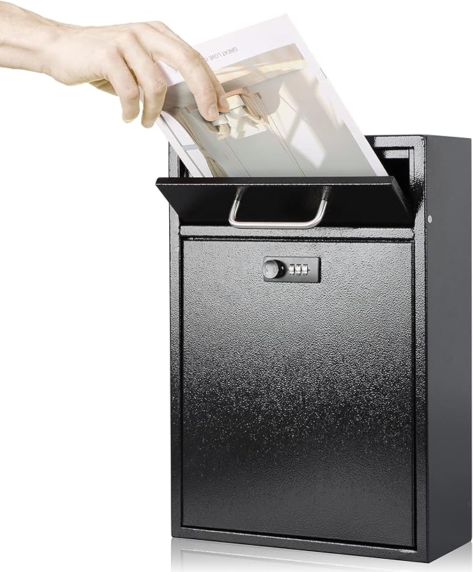 KYODOLED Steel Combination Lock Mail Boxes Outdoor,Locking Wall Mount Mailbox,Security Lock Drop Box,Collection Boxes,16.2H x 11.22L x 4.72W Inches,Black X Large