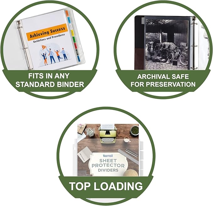 Samsill Sheet Protector Dividers, 8.5 x 11 Inch Page Protectors for 3 Ring Binder with Pockets, Super Heavy Duty, 8 Binder Dividers with Tabs, Letter Size, Top Loading, Acid Free, 1 Set