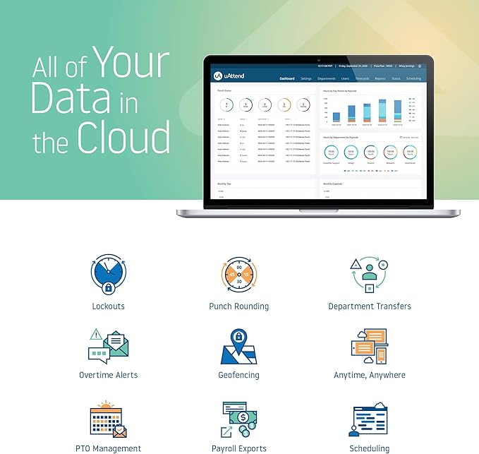 - Touch-Free, Cloud-Connected Time Clock: The uAttend DR2000 offers a modern, touch-free solution for employee time tracking, keeping your workplace hygienic and efficient.