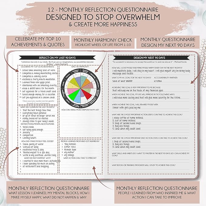 - REDUCE OVERWHELM, STRESS AND FIX PROCRASTINATION - Follow a unique 8 step system that will help you bring back harmony, clarity, and peace in your life while achieving your goals. This planner is perfect birthday gifts for men and women, anniversary gift for couple and lastly gifts for friends