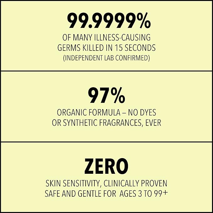 - 97% Organic Ingredients, 70% v/v USDA Organic Certified Ethyl Alcohol, USDA Certified Biobased Product 100%